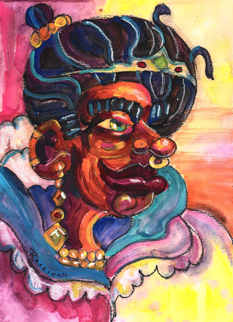 Whoseza Medusa? Acrylic & Oil Pastel on Paper. 15 x 11"